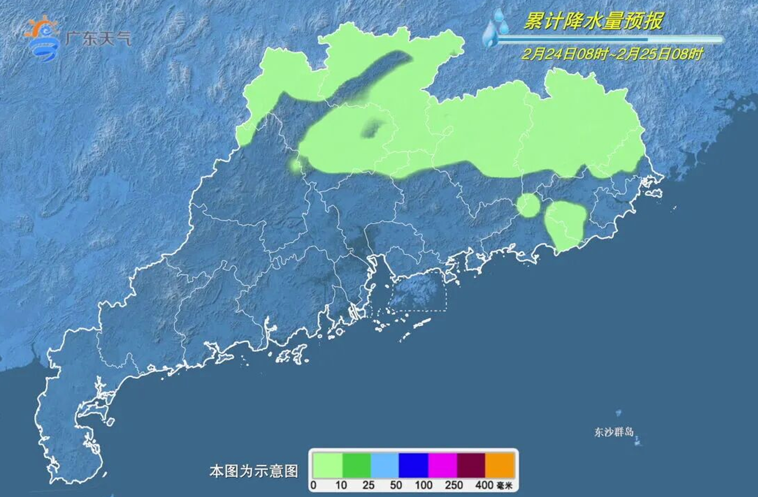 2月24日8时至2月25日8时累计降水量预报。